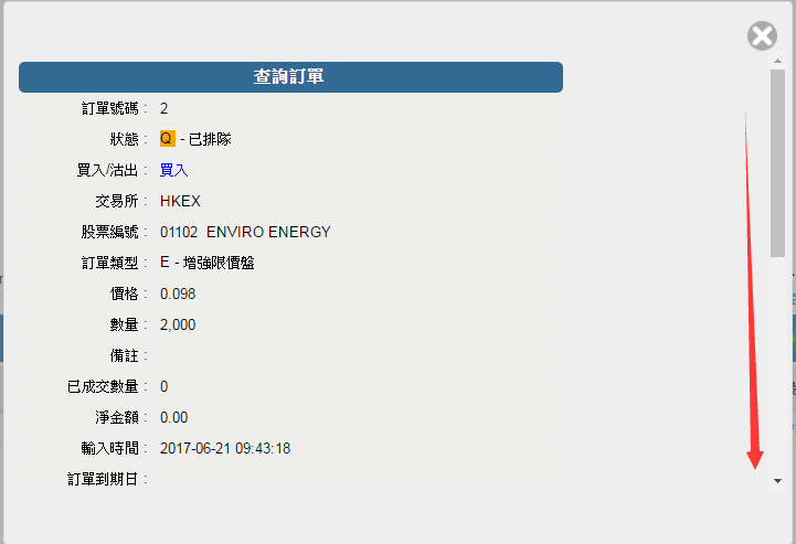 c) 如需查询订单之详情,只需点击该订单编号,订单数据窗口便会自动显示